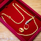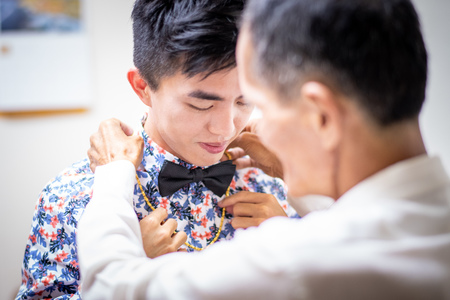 新郎爸爸為自己帥氣的兒子帶上金飾