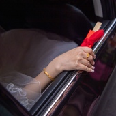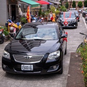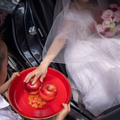 新娘一早起來梳妝,換上白紗,等著迎娶車隊的到來