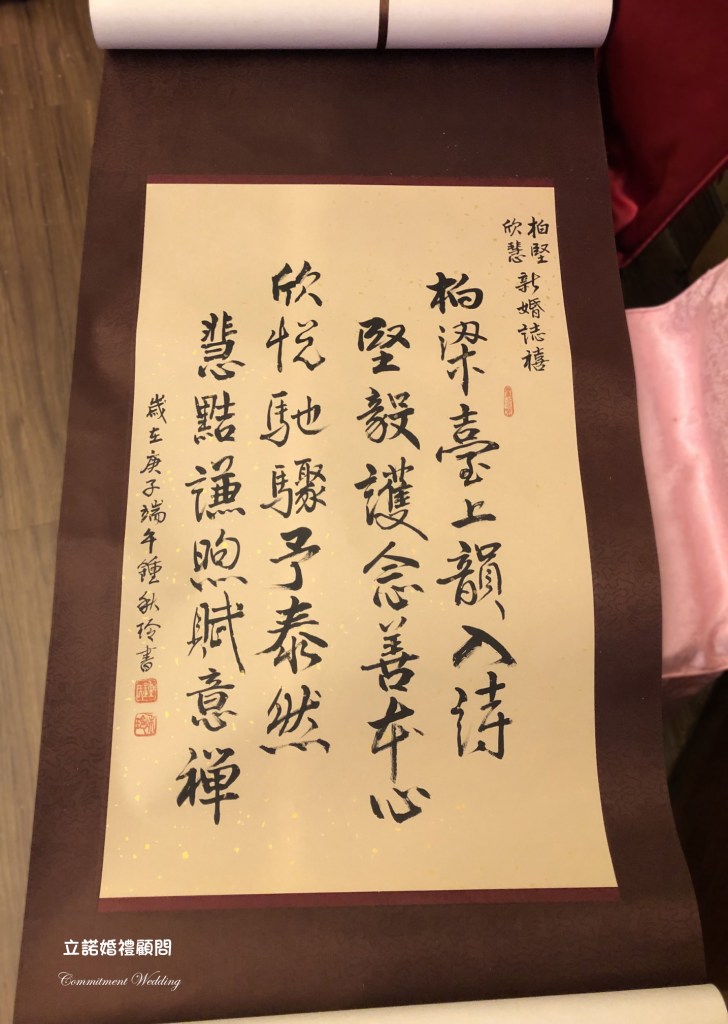 新娘媽媽拿出親手寫下的書法詩