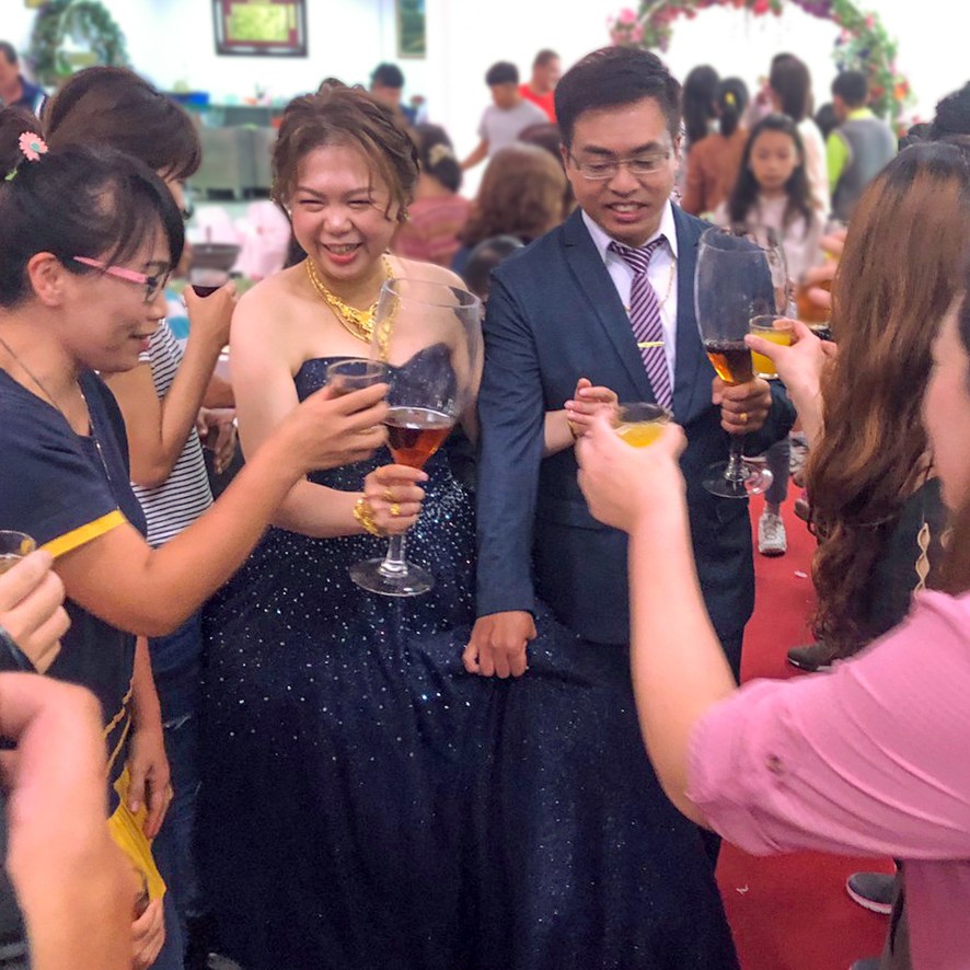 在婚宴最後階段,特別要求一定要上台為新人祝賀