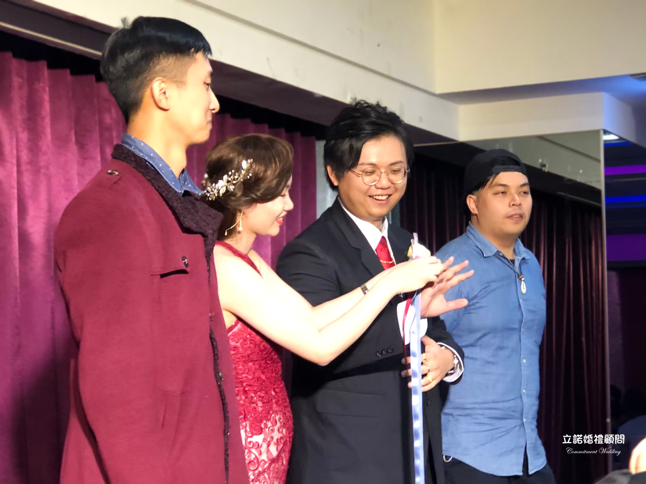 由 新娘 將綁帶綁在 新郎 上