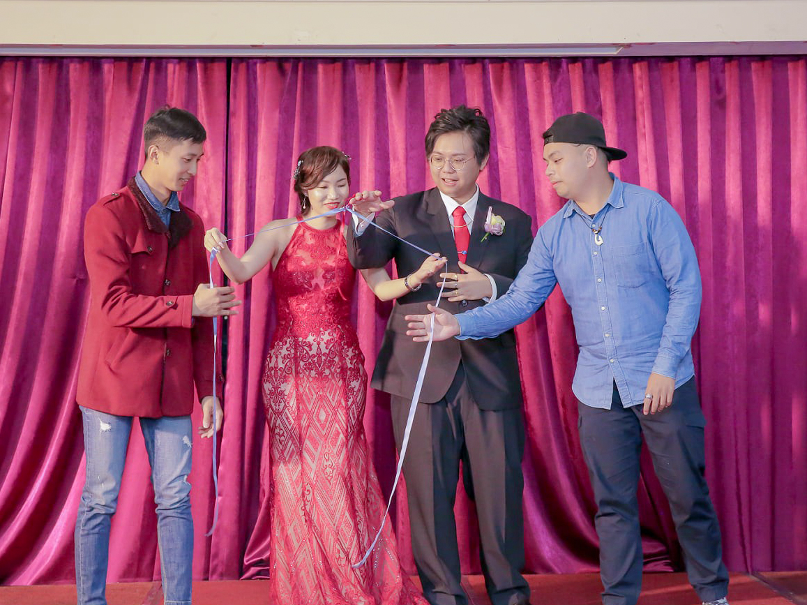 最後 新郎 當然是由 新娘 拉著綁帶拖走啦